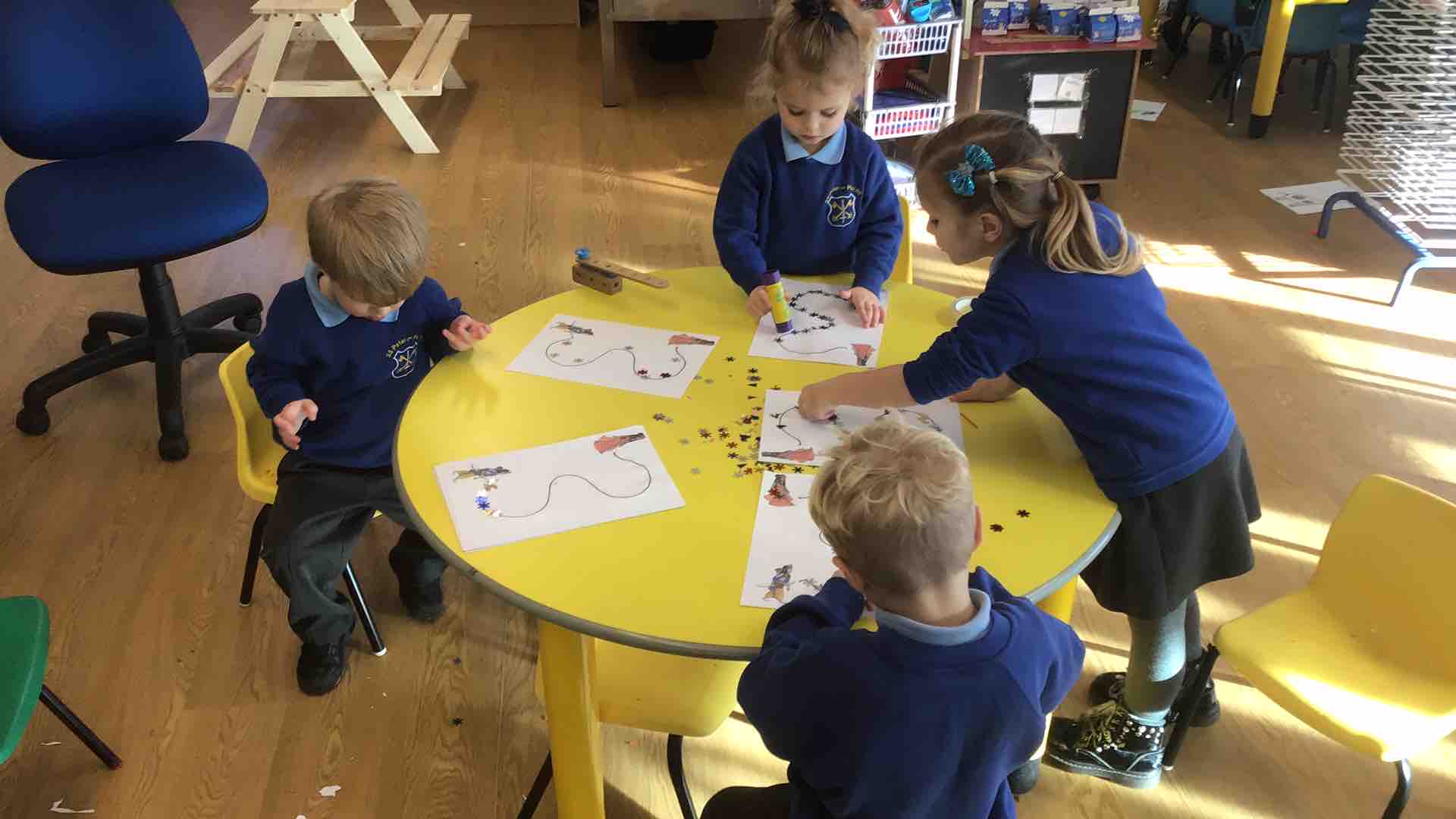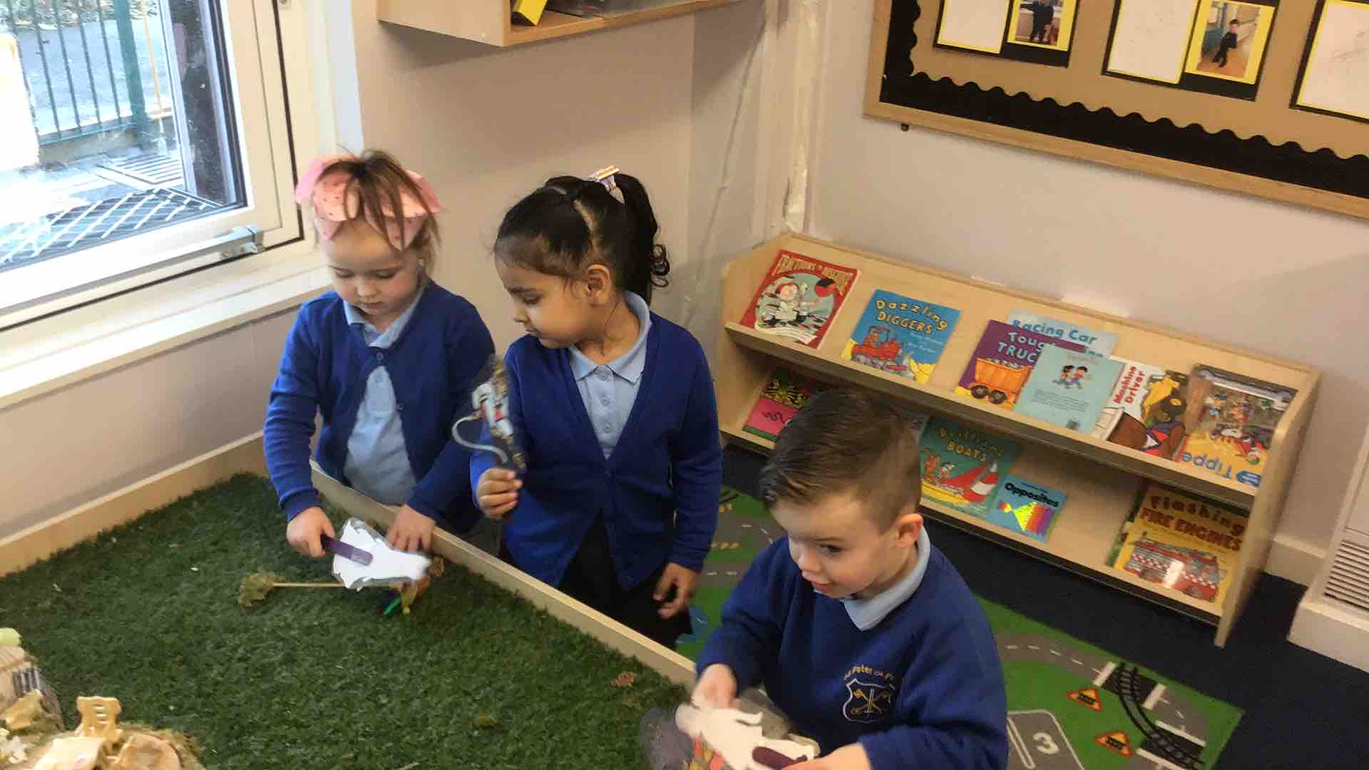 Nursery celebrated Diwali by reading the story of Rama and Sita. They used the small world table to retell the story and used sequins to light the path for Sita and Rama.