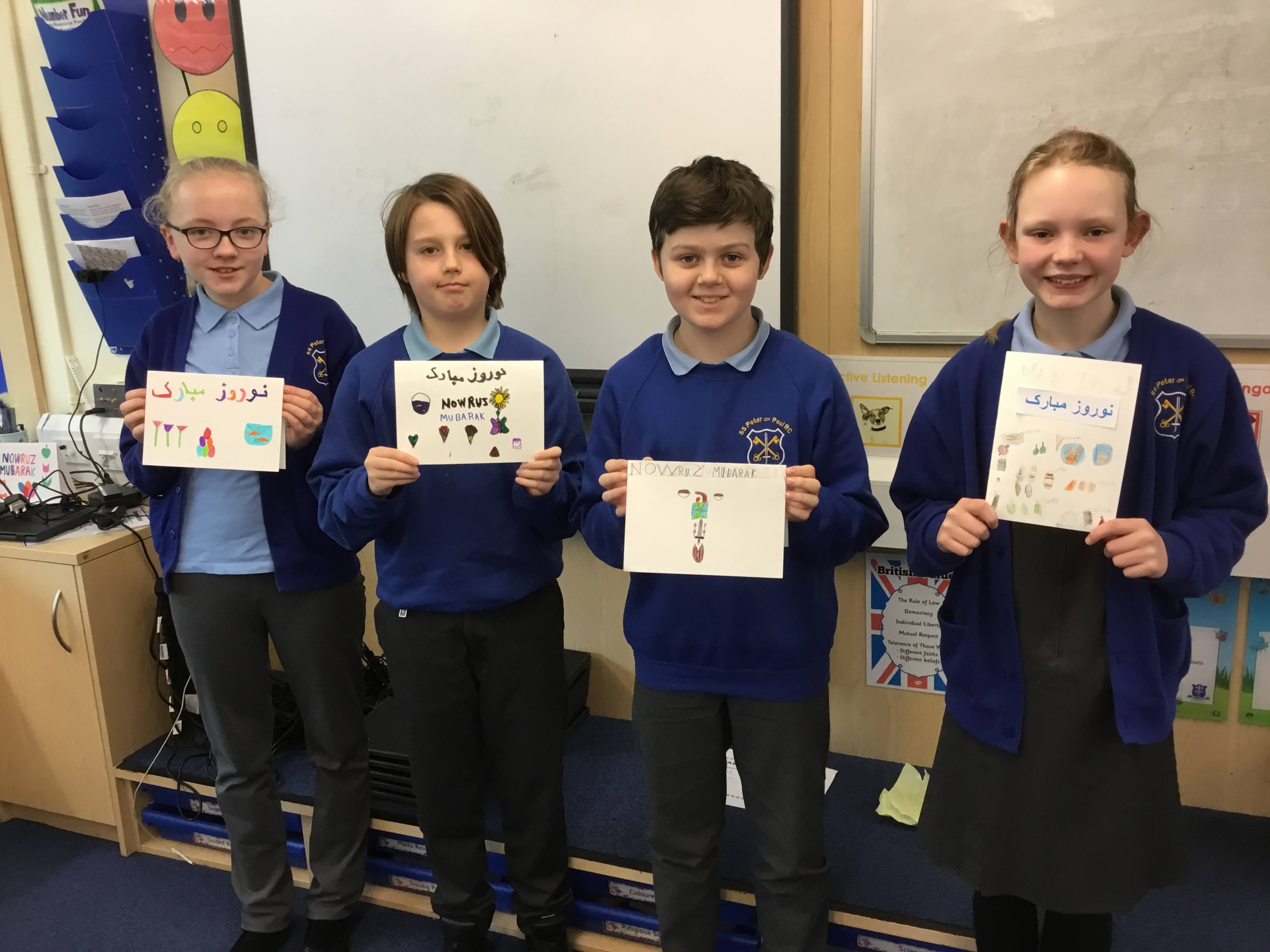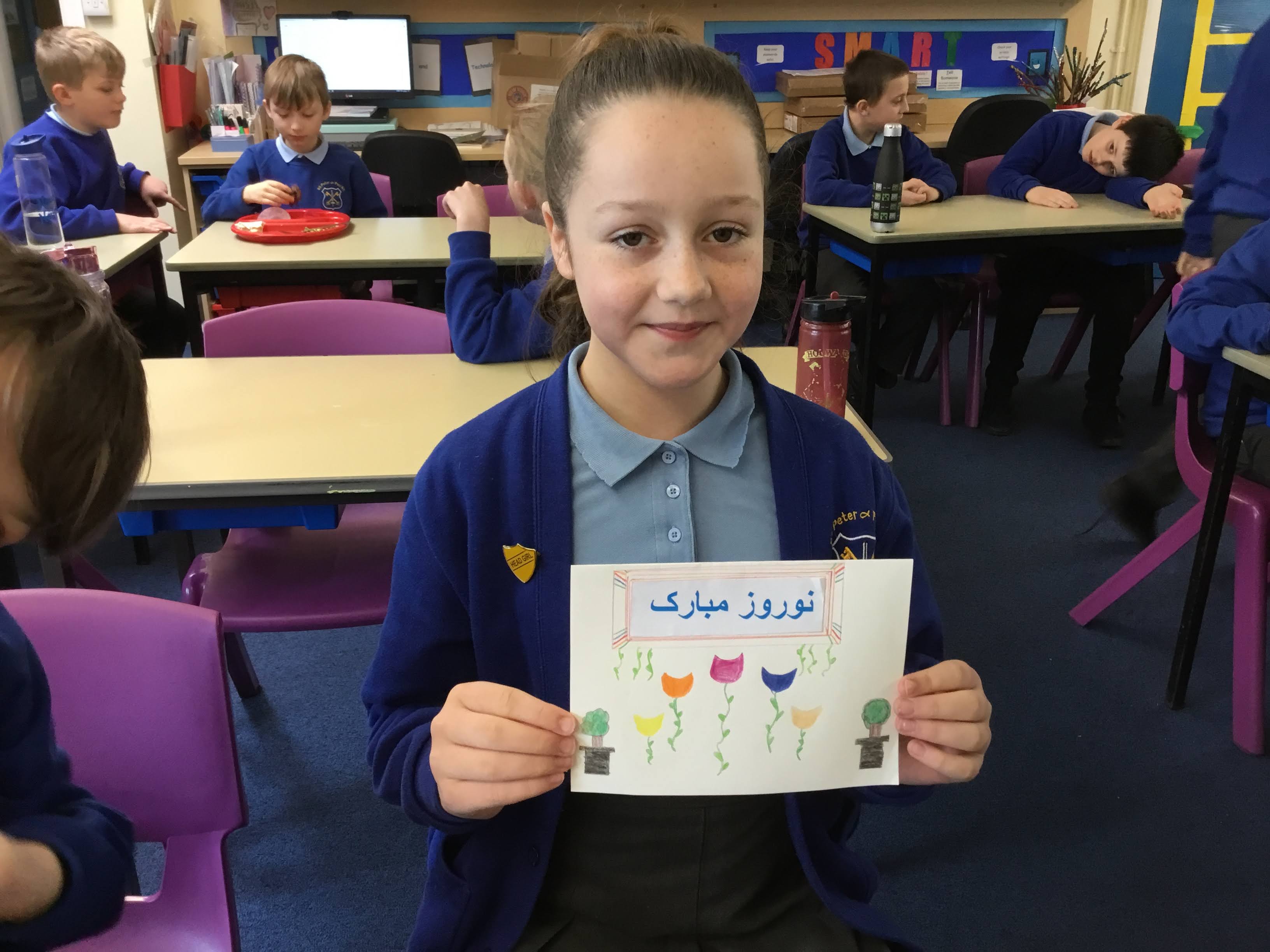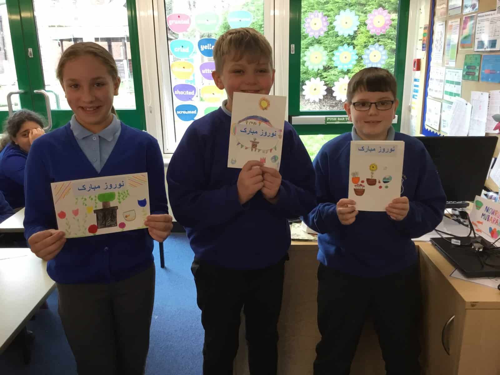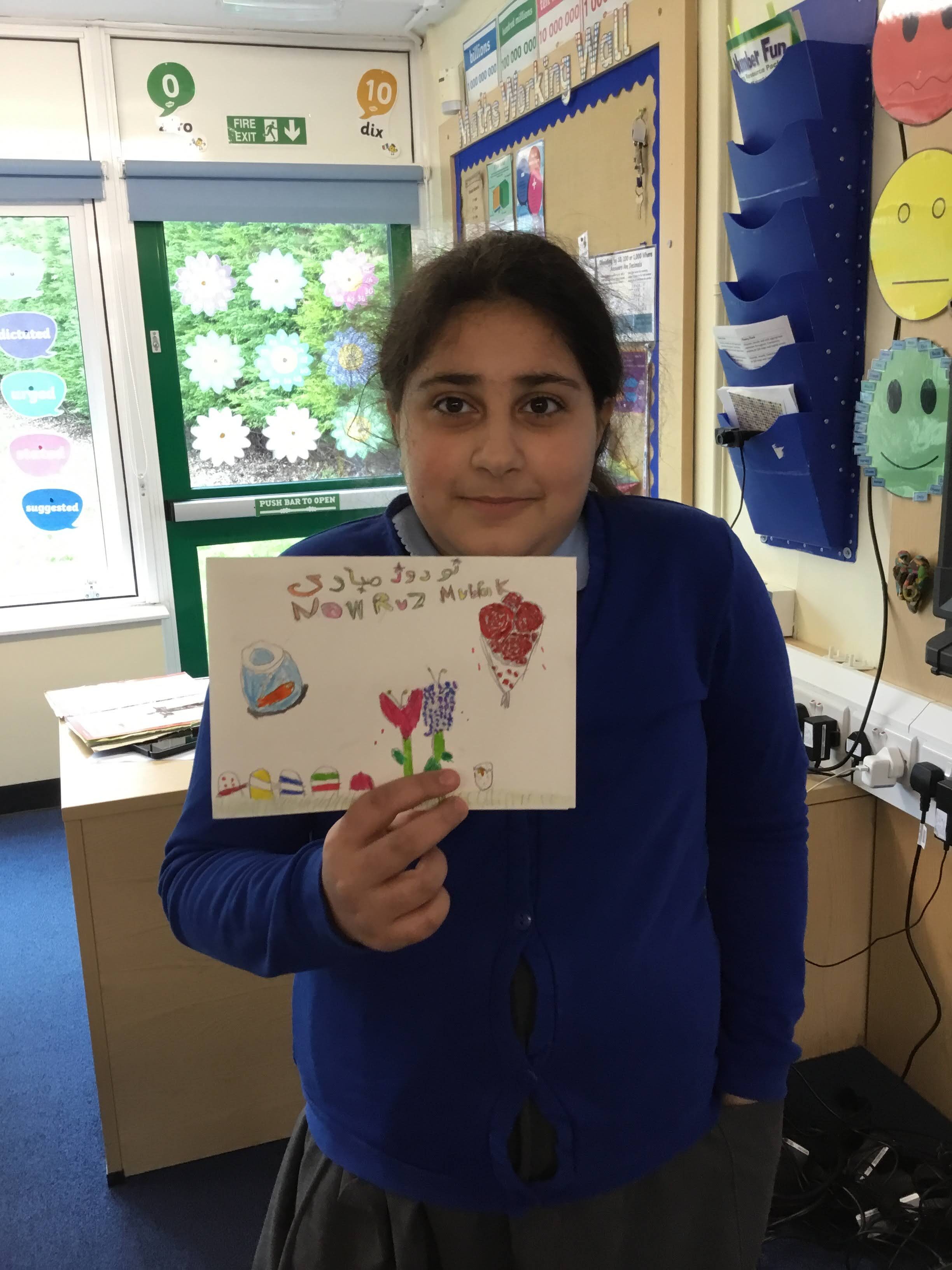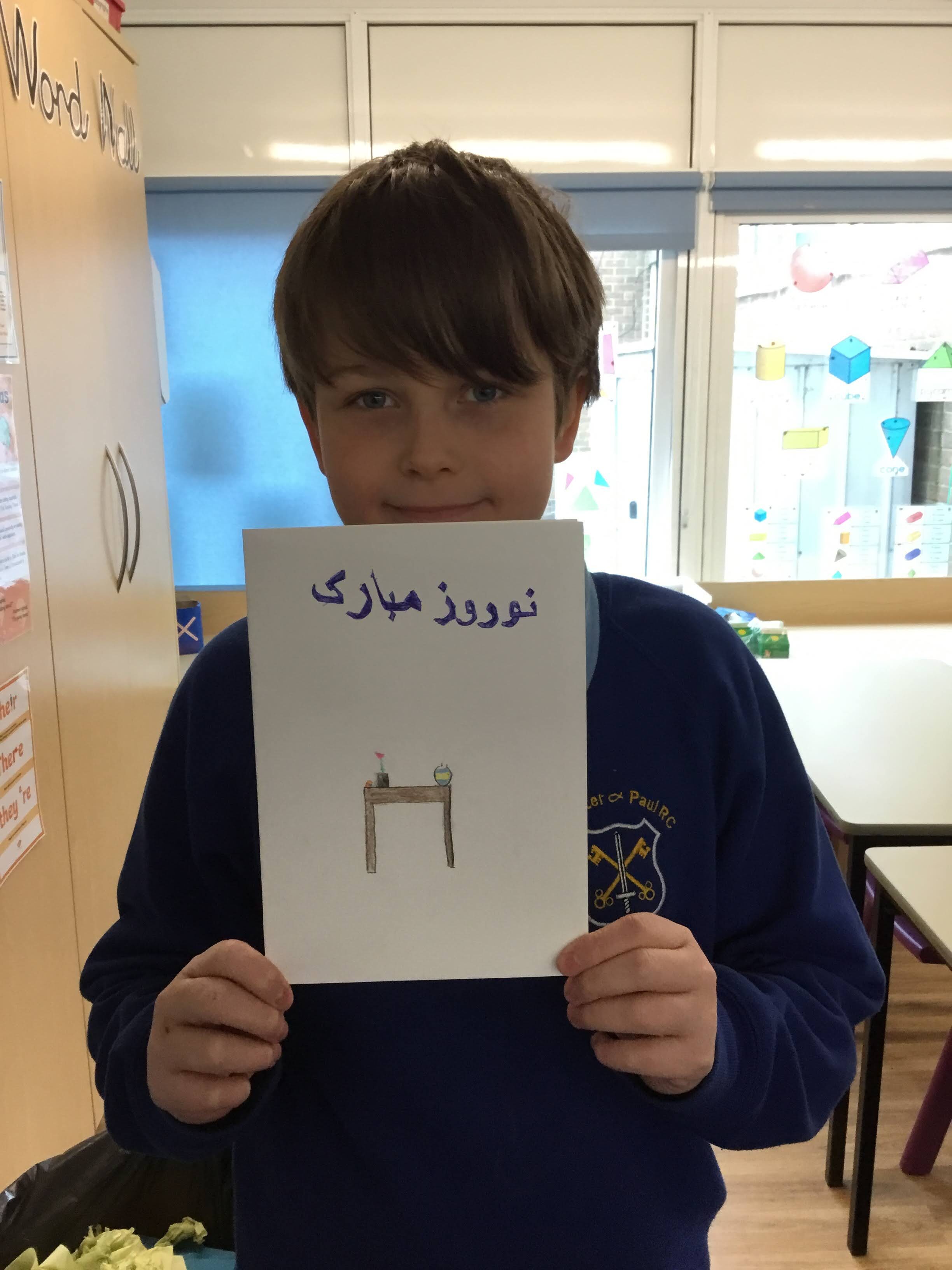 Our Year 6 class have celebrated Iranian New Year, they created their own Haft-Sin tables on paper and they designed Nowruz cards for our Iranian family.