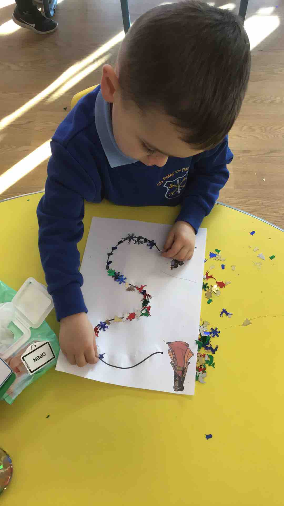Nursery celebrated Diwali by reading the story of Rama and Sita. They used the small world table to retell the story and used sequins to light the path for Sita and Rama.