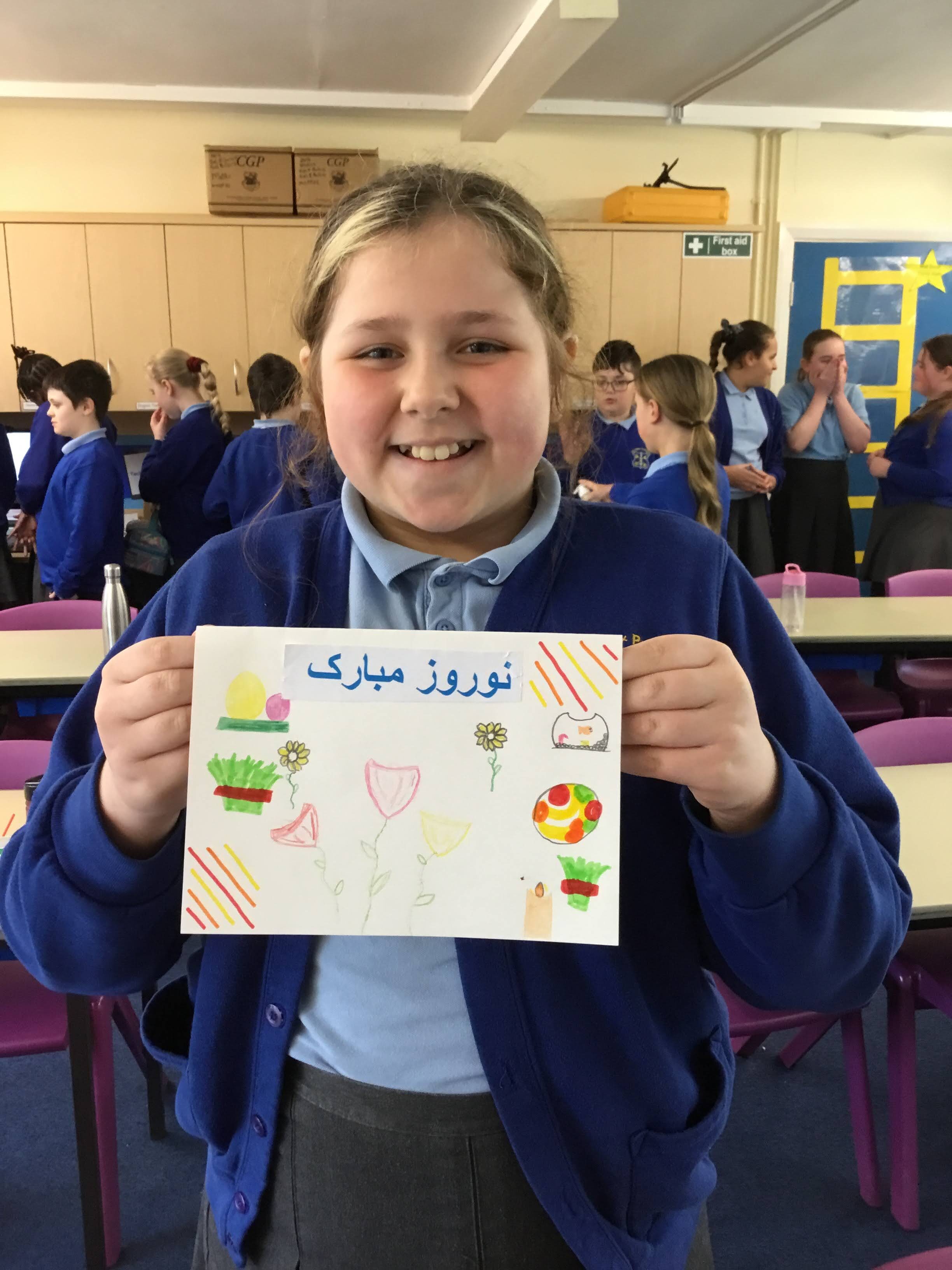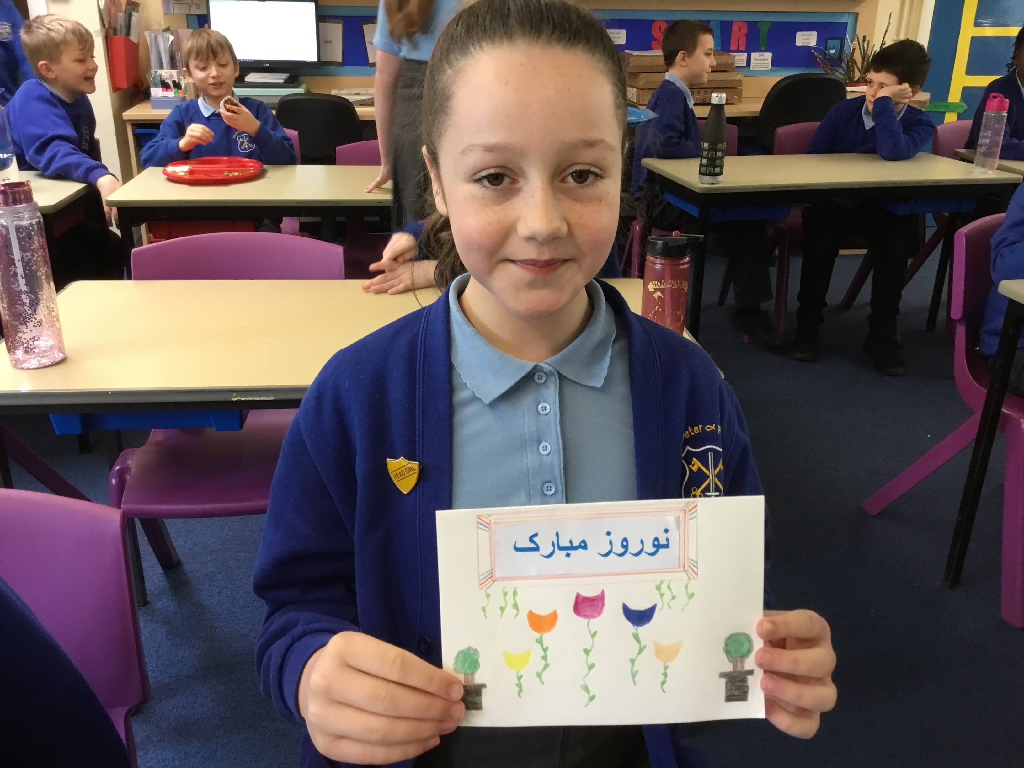 Our Year 6 class have celebrated Iranian New Year, they created their own Haft-Sin tables on paper and they designed Nowruz cards for our Iranian family.